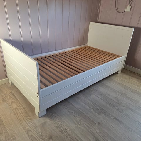 Hvit Gulliver sprinkelseng fra IKEA gis bort mot henting da den ikke brukes lenger. Den fjerde siden følger også med, samt skruer som hører til, slik at den kan lukkes helt. Noen få bruksmerker (se bilder), ellers i fin stand. Størrelse 60X120.