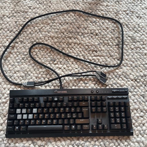 Rødt mekanisk 100% tastatur fra corsair selges i god stand.