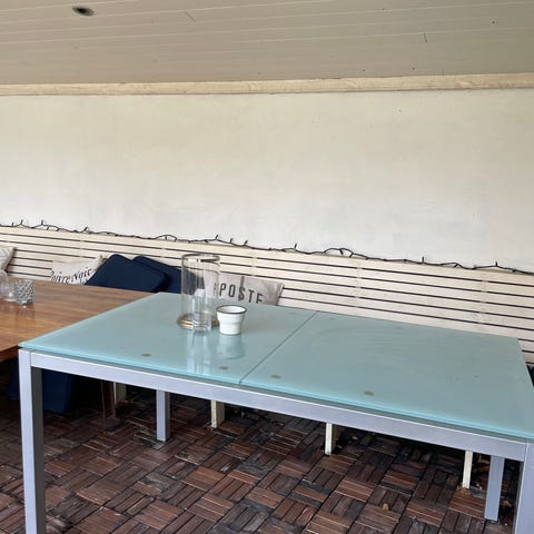 Heilt ok hagebord/spisebord, litt matt etter sol