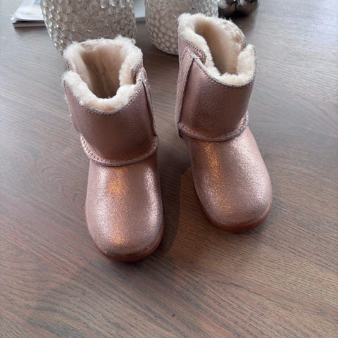 Pent brukt skinnsko Ugg til jente i str 23,5 brunn farge med pikker i rosa/fiolet/blå farger.
