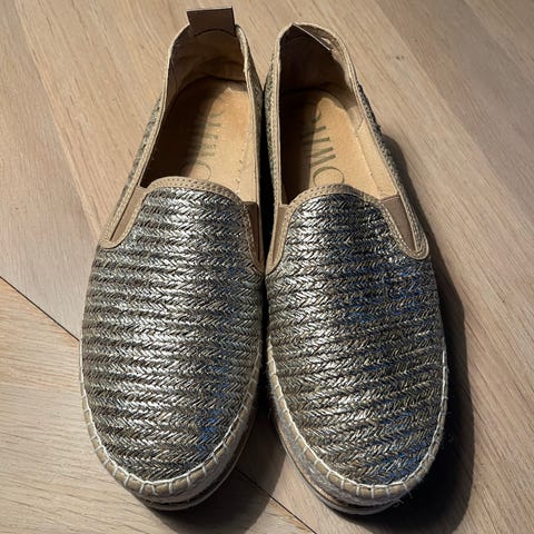 Paljetter som man kan stryke på for å få annet mønster på skoene. Enten sølv eller gull/svart leopard