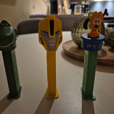 Goblin Monster PEZ fra 1998 og Barry Benson PEZ fra Biefilmen (Bee Movie) selges samlet for 100kr.