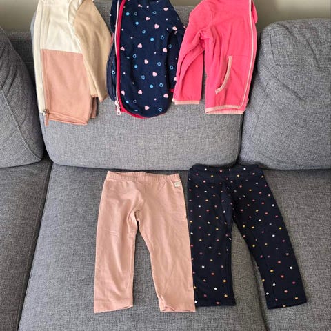 Klespakke med fleece dress str 92, fleece genser i str 86, men den passer bedre til 92.