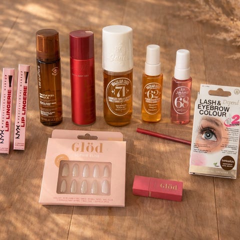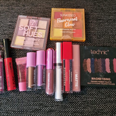 Øyenskygge, blush, 4 lipgloss, ansiktsmaske, glossy lip stain.