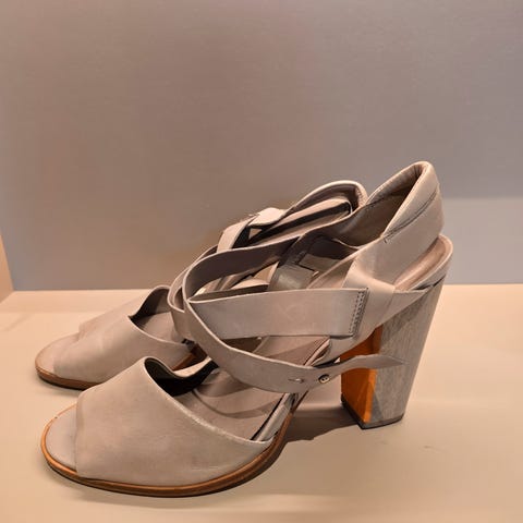 Høyhælte sandaler fra Sapatos i hvit skinn.