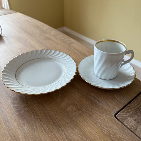 Bogstad hvit med gullkant- deler til kaffeservise