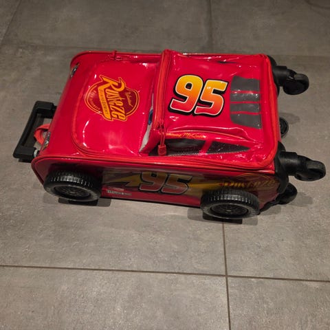Liten trillekoffert til barn. Kan også brukes som ryggsekk når håndtaket er nede. Fin å ha inne på flyet eller når man skal på andre reiser.