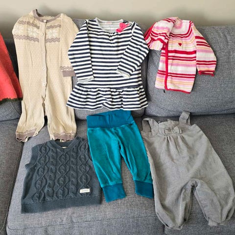 Søt klespakk av elegante og varme klær til jente i str 74+80. Pent brukt!
