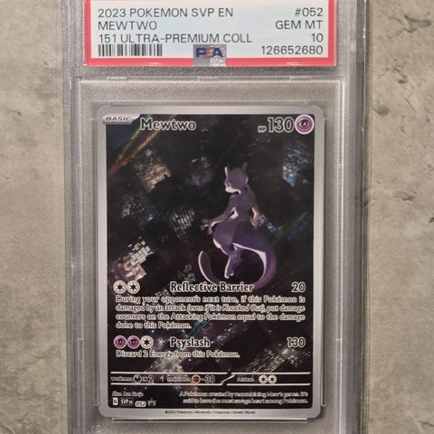 Selger en Mewtwo fra 151 UPC i PSA 10.
