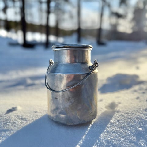 Dette er et vintage aluminiumspann fra den tradisjonsrike norske produsenten Høyang, med en kapasitet på 50 liter. Spannet ble brukt til oppbevaring og transport av melk. i dag kan det fungere som perfekt dekorasjon i hjemmet, på hytta eller i hagen.