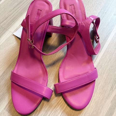 Pensko / heels med blokkhæl fra ASOS. Asos design wide block heel sandals. Str 41, wide fit. Lav hæl. Perfekt til bryllup. Kjøpt på Tise. Ikke brukt av meg eller forrige eier. Kun prøvd på. Selges for de er for store til meg. Liten skade/flekk bak på hælen som trolig er kommet ifm sending.