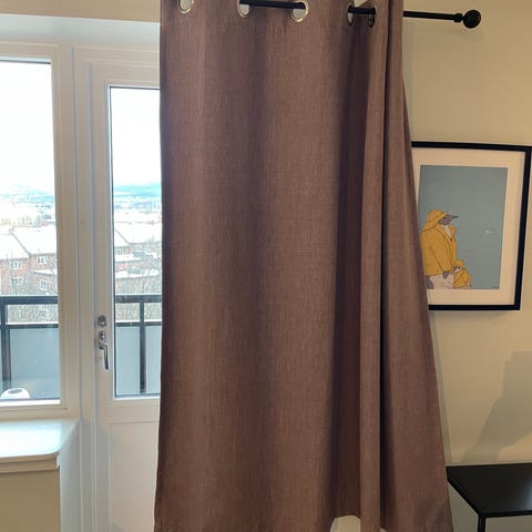 Beautiful grey curtains, fabric with a soft, fibrous suede effect, with eyelets. Used only a short time. For sale because of reorganisation of new flat.