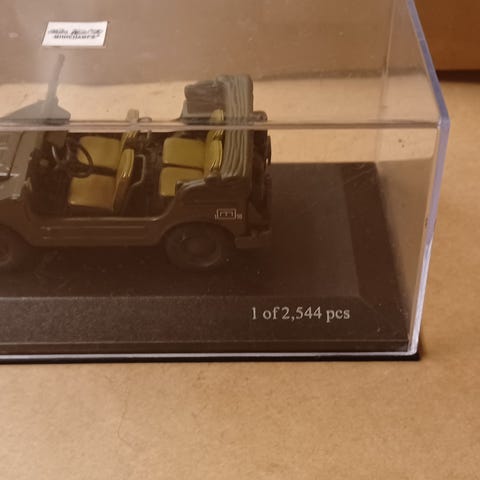 DKW Munga modellbil i grønn farge. Denne modellen er en detaljert replika av den originale DKW Munga, kjent for sitt robuste design. Perfekt for samlere eller som et dekorativt element.