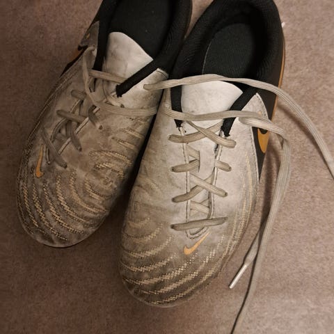 Selger et godt brukt par Nike Phantom fotballsko i sort / hvit, størrelse 35 med FG knotter.