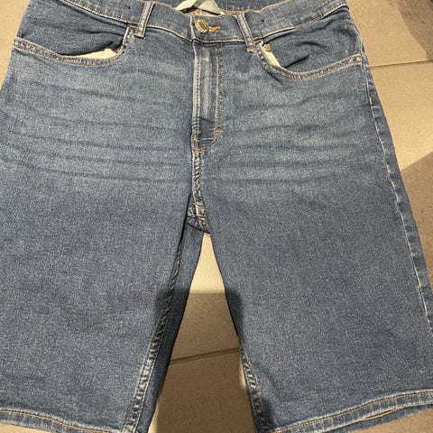 Fin olashorts med strikk i livet som har muligheter for å strammes. Den har både baklommer og lommer på sidene. Den har glidelås og knapp.