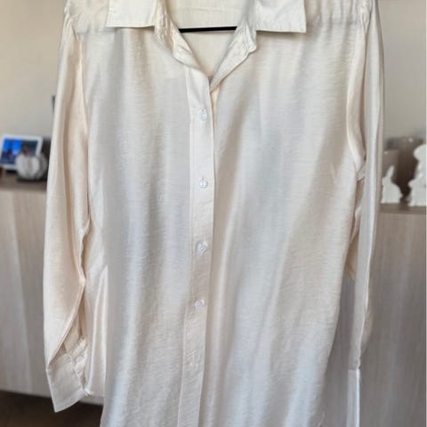 Myk og komfortabel langermet bluse eller topp. Størrelse 32, men passer opptil 36. Har blitt brukt da den var superkomfortabel. Passer fint til blå og hvite bukser og skjørt. Selges her. Ingen merker eller hull. Fortsatt i god stand. Veldig mykt materiale.