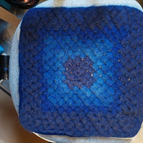 Tovet hjemmelagd sitteunderlag i skikkelig ull.