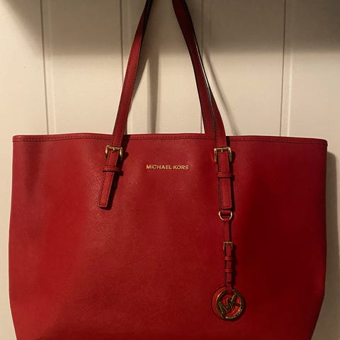 Fresh, oransje Tote veske fra Michael Kors. Den har to lommer innvendig, en med og en uten glidelås. Vesken er pen, men har bruksmerker langs åpningskanten og på håndtakene, se bilder.