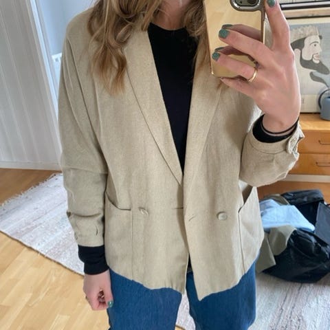 Unik vintage jakke i lin med trykk