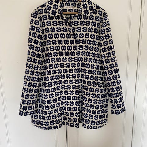 Nydelig blazer i antatt lin med innvendig foring, pent brukt. Dekormønster er trykket på stoffet.