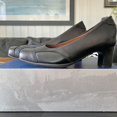 Sorte pene pumps i skinn fra Klaveness, str 4,5 (37,5)