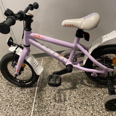 Pent brukt 16" barnesykkel i fargen rosa selges.
