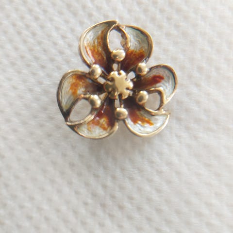 Gammel brosje formet som blomst. Finner ikke stempel, men den er sølvfarget og ble blank med sølvpuss.