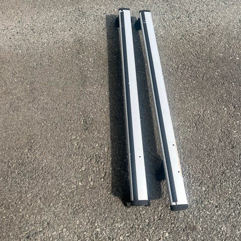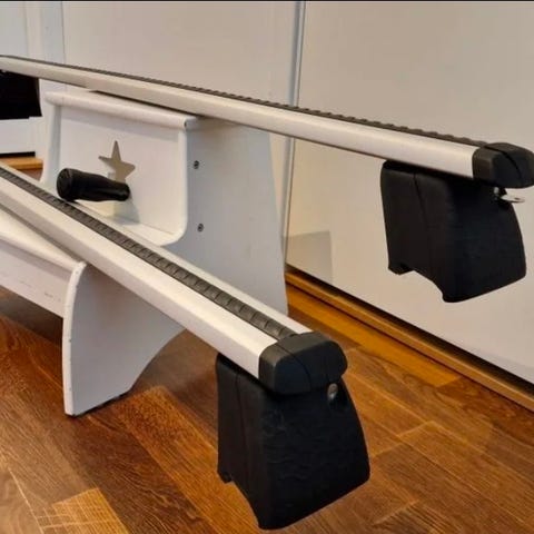 Takbøylene har nøkkellås ved alle fire festepunkter slik at de kan låses fast til bilen. Nøkkel til takbøyler medfølger. Takstativ mangler ett plastdeksel, se bilde. Trekantnøkkel mangler for montering av takbøylene til bilen, her har jeg brukt et lite pipesett.