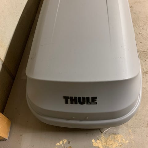 Takboksen er utstyrt med festestropper innvendig for sikring av ski etc. Lokket har nøkkellås for å sikre mot tyveri. To gassdempere letter åpning av lokket og holder det åpent under lasting og lossing. Nøkkel til takboks medfølger. Takboksen har noen kosmetiske riper på topp bakre del, se bilde.
