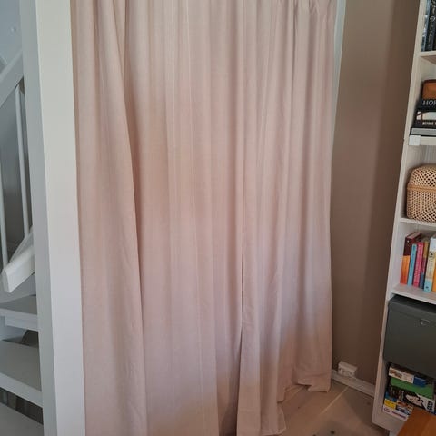 Pent brukt rosa gardiner selges.