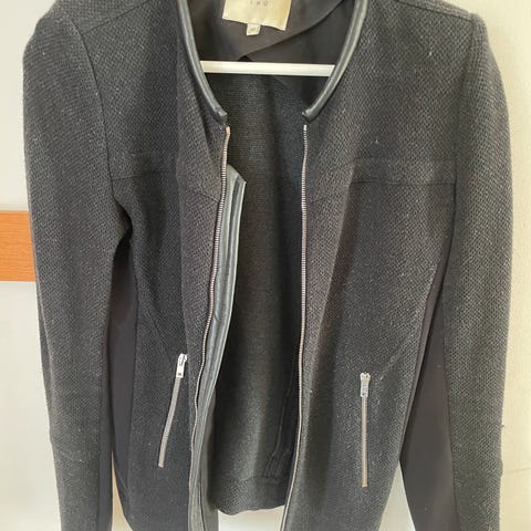 Denne jakken har jeg vært veldig glad i - den er godt brukt - men fortsatt masse bruk igjen, Det er en fransk størrelse 40, den passer meg som vanligvis bruker størrelse 38/40.