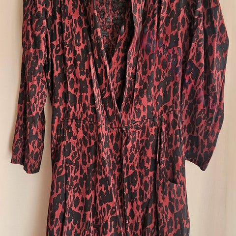 Super fin kjole fra Ganni. Går til mellom kne og føtter. Litt vid i modellen. En stor S, kanskje litt mot M? Har klippet bort tag. Super fin
