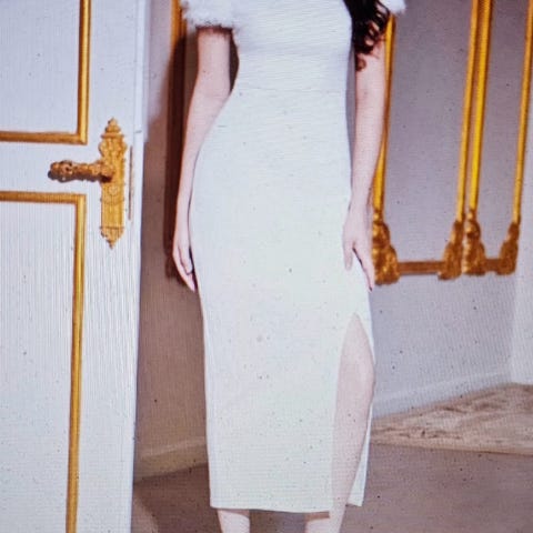 Hvit paljett kjole fra Meshki selges ubrukt med lapp.