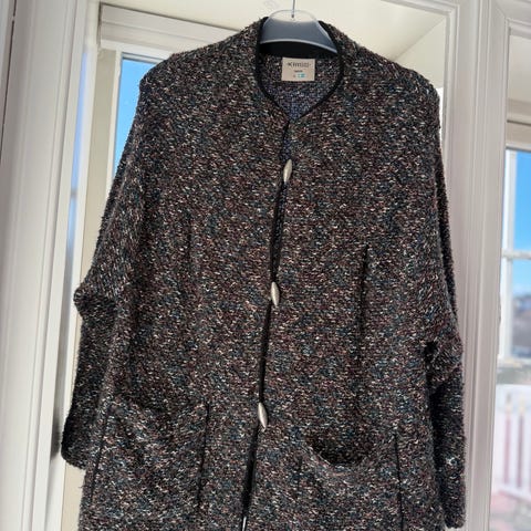 Cardigan fra japansk merke Les Sportique selges. Pent brukt, varm og god å ha på istedenfor jakke på høsten/sensommeren