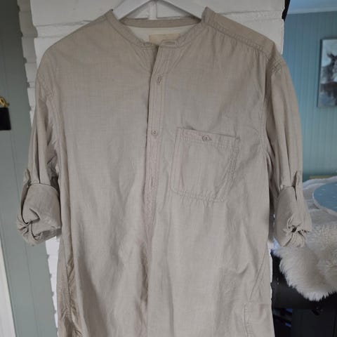 Selger en pent brukt flannelskjorte i brun/okergul fra Muji.