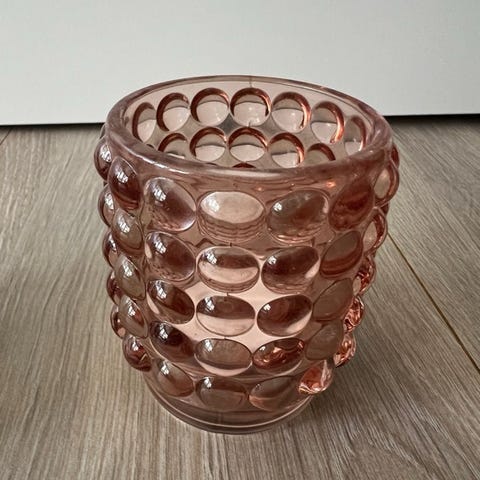 Pent rosa rundt lysglass selges. Se mål på nest siste bilde og de andre lysglassene jeg selger av samme type, men i andre farger og størrelser. Hentes i Ski eller sendes mot betaling av porto.