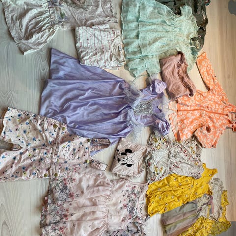 Selger disney klær som har blitt for lite for frøkna I hus. Den ene kjolen har noen flekker jeg ikke har prøvd å fjerne.