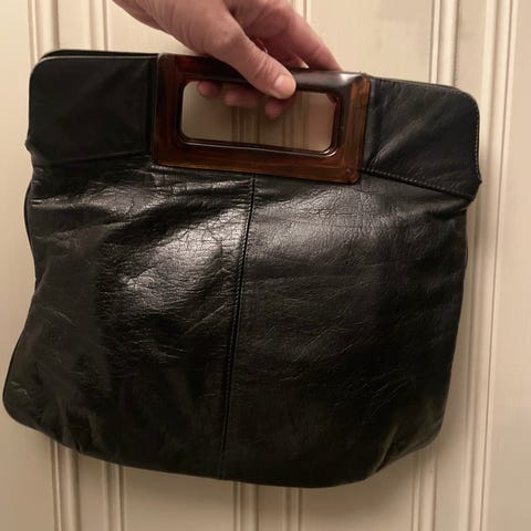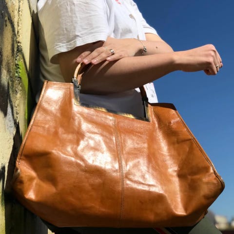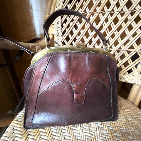 Trolig i kamelskinn og stål. Velholdt og pent brukt. Romslig og kul. Trolig fra ca 1960