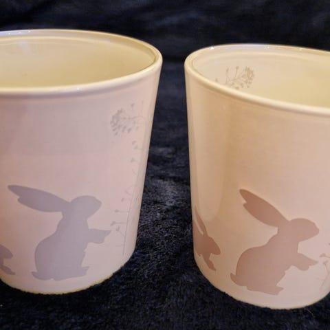 Hvitt telysglass med kanin/hare som motiv. Pent brukt, men trenger en vask. Selger også 2 andre lysglass i samme serie med andre dyremotiver. Pris er per stk. Se mål på siste bilde. Hentes i Ski eller sendes mot betaling av porto.
