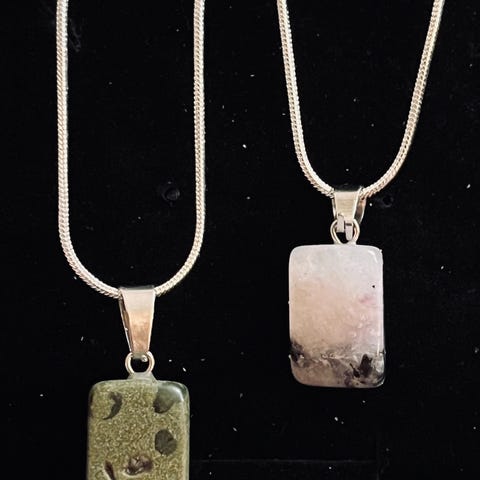 Flotte Nye Smykker med Maskintromlet stein, se på bildene for beskrivelse. Kjedet er 50 cm og et flott slangekjede med klolås de selges for kun 649.- pr stk og sendes gjerne i post mot porto. Bruker Vipps/Straksbetaling Bank