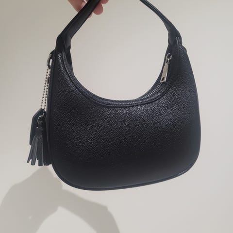 Pen veske i ekte skinn for dame. Denne stilige vesken har et elegant design med en gylden detalj og kjede. Perfekt for spesielle anledninger og fester. Str ca 36x12.