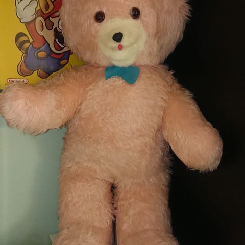 Gammel bamse fra 50-60 tallet.Bamsen brummet når den ble snudd på, det gjør den ikke lenger.