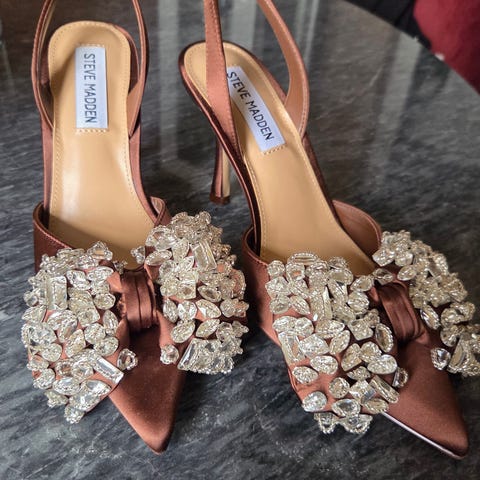 Rålekre pumps fra Steve Madden. Beige/strass. Kun brukt en gang i et bryllup. Normale i størrelsen. Ekstra strass medfølger. Nypris 1590 kr. Som disse bare annen farge: https://www.zalando.no/steve-madden-lumiere-hoeye-haler-black-st311b06q-q11.html