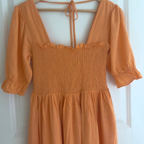 Kjole brukt 3 ganger. Romslig i str som kan brukes både av en S eller M, alt hvordan du selv ønsker å ha den.