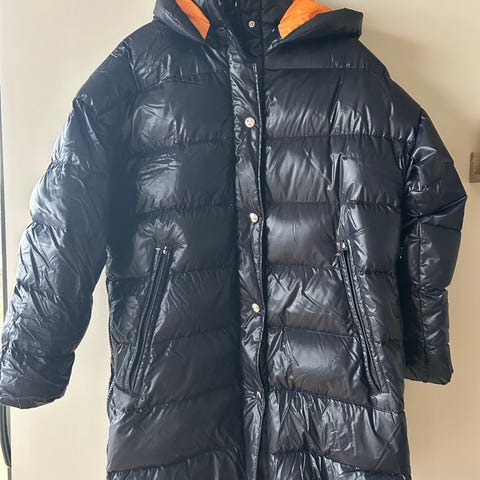 Den er av dun, utrolig lett og super behagelig vinterjakke. Holder godt på varmen.