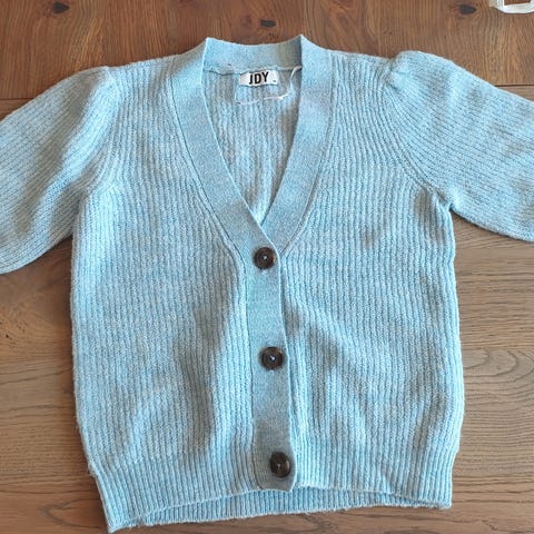 Har valgt å si igjen knapper, slikt at den brukes som vannlig genser. Disse kan sikkert åpnes igjen, hvis ønskelig.