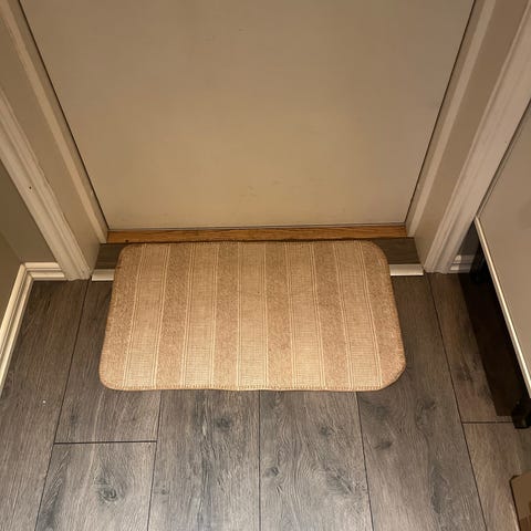 Dørmatte med grov tekstur som hadde vært perfekt å felle ned i flisgulv! Evt kun ligge på toppen.