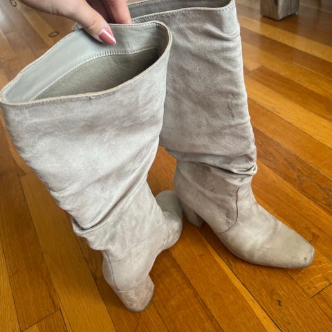 Veldig myke og behagelige på. Brukt en gang. Kostet noen tusen som nye. Jeg bruker vanligvis str 39, så tror det må være mer riktig størrelse da disse passer meg fint.