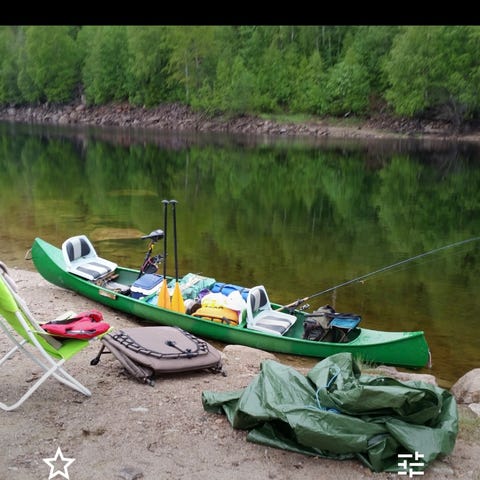 Grønn Hasle Kano med Padleårerog tillegg utstyrer