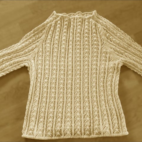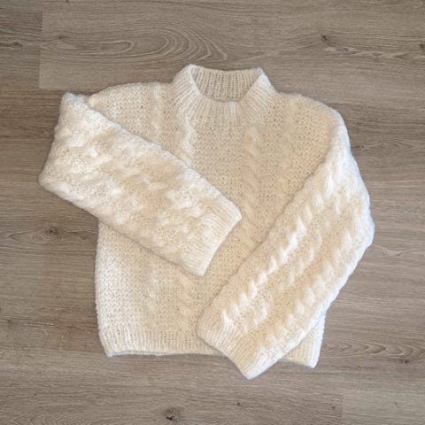 Hvit Wenagenser strikket i originalgarn.